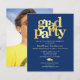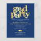 Soyez fiers, réjouissez-vous et mettez en valeur cette étape importante de votre diplômé préféré ! Envoyez cette invitation photo personnalisée et à petit budget, minimaliste, simple et moderne pour un événement inoubliable. Une typographie grasse et graphique en faux or et une icône de casquette, ainsi qu'une typographie blanche supplémentaire, se superposent sur un fond bleu marine. La photo de votre choix est au verso. Personnalisez le texte personnalisé avec la photo de votre diplômé, son nom, son école, son année de promotion et les informations sur le lieu de la fête. Garantie d'ajouter une touche de style amusant à leur occasion spéciale !