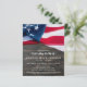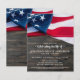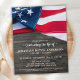 Invitation pour la célébration de la vie et funérailles avec le drapeau américain en mémoire. Cette invitation patriotique pour la célébration de la vie présente un drapeau des États-Unis d'Amérique sur un fond en bois sombre. Personnalisez cette invitation pour la célébration de la vie avec le drapeau américain avec le nom et les dates de votre proche, le lieu de l'événement et toute information supplémentaire au verso. Cette invitation funéraire avec le drapeau américain sera un souvenir précieux. Parfait pour des funérailles militaires, un service commémoratif de vétéran ou une célébration militaire de la vie. En mémoire - Mémorial militaire du drapeau américain. DROITS D'AUTEUR © 2020 Judy Burrows, Black Dog Art - Tous droits réservés. Célébration de la vie patriotique pour vétéran à petit budget.