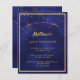 Une invitation de fête d'anniversaire tendance et moderne pour les 50 ans (ou tout âge) pour les hommes, les garçons, les mâles. Un fond bleu foncé, bleu marine. La couleur bleue est inégale. Avec un cadre doré faux et une pluie de confettis dorés, des lettres de couleur dorée. Personnalisez et ajoutez vos informations de fête.