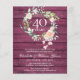 Caractérisé par une délicate guirlande florale aquarelle sur un fond de panneaux de bois rustique rouge rubis, cette invitation d'anniversaire de mariage 40 ans chic et botanique peut être personnalisée avec vos informations spéciales d'anniversaire rubis. Le verso présente une guirlande florale assortie encadrant vos dates d'anniversaire en texte blanc élégant sur un fond de panneaux de bois rouge rubis. Conçu par Thisisnotme