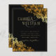Présentez nos invitations de mariage à l'allure de dentelle d'or avec un arrière - plan noir audacieux! Ces invitations sont parfaites pour les couples qui veulent une invitation sophistiquée et glamour qui donne le ton pour leur jour de mariage. Le design complexe en dentelle dorée à l'allure de feuille contraste magnifiquement avec l'arrière - plan noir, créant un effet spectaculaire et luxueux. Ces invitations sont parfaites pour les mariages de cravates noires ou formelles, ainsi que pour les mariages modernes avec une touche de glamour. La technique d'impression à plat permet à vos invités de comprendre facilement les détails de votre journée spéciale en lisant le texte de manière claire et simple. Les invitations sont entièrement personnalisables, de sorte que vous pouvez modifier le texte, la police et la couleur pour correspondre à votre thème et à votre style mariage. Nos invitations de mariage en dentelle d'or contre un arrière - plan noir sont sûr d'impressionner vos invités et de créer une impression durable. Elles sont parfaites pour les couples qui veulent une invitation élégante et inoubliable qui reflète leur personnalité unique et audacieuse.