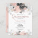 Typographie florale blanche et de script rose millénaire. Invitations budgétaires de célébration d'anniversaire fleurie Quinceañera. Vous pouvez ajouter des photos au verso ou du texte supplémentaire si nécessaire.