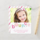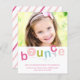 Une invitation à la fête anniversaire de enfant moderne avec une typographie de rebond colorée et l'âge et la photo personnalisés. Cliquez sur le bouton Modifier pour customiser cette conception.