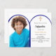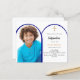 Ajoutez votre propre photo de taille verticale. Un cadre photo en arc bleu marine. Couleur arrière - plan blanche. Personnalisez et ajoutez un nom et des détails. 1 feuille = 1 invite imprimé bord à bord.