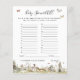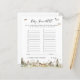 Les teintes terreuses et organiques sont toujours un choix idéal pour les baby showers. Une palette de brun, vert tendre et écru pour une fête boisée ne déçoit pas. Les teintes muettes gardent l'aspect minimal et au naturel - parfait pour les fêtes de saumons, de bois ou de jardin de printemps. Des matériaux naturels comme le bois, la verdure et la pierre rendent ce mélange de couleurs facile à intégrer dans un événement magnifique. Promenade dans les bois - collection d'histoires estivales sur les animaux de forêt mignons avec les fleurs sauvages, la verdure, les arbres. Bien sûr, il n'est pas nécessaire de jouer à des jeux au baby shower, mais considérez ceci : vous allez avoir un groupe de tous les âges, et la plupart des invités n'ont probablement jamais rencontré l'un l'autre avant la fête. Mélanger dans quelques-uns de ces jeux de baby shower classiques est une façon parfaite de briser la glace. Nos cartes de jeu double face sont un ajout élégant et pratique à toute douche. Ces cartes professionnelles sont rapidement personnalisables. Ajoutez votre libellé personnalisé à cette conception à l'aide des cases "Modifier ce modèle de conception" situées à droite de l'élément, ou cliquez sur le bouton bleu "Customiser" pour arranger le texte, modifier les polices et les couleurs et ajouter des informations ou des images supplémentaires à cette conception. Cliquez sur "Customiser plus loin" pour ouvrir les options d'édition complètes. Si vous avez besoin d'éléments de coordination (cartes de remerciements, etc.), veuillez me contacter pour une commande personnalisée. ****Pour les demandes personnalisées avec lesquelles vous avez besoin de mon aide, ne placez pas cette marchandise dans votre panier. Au lieu de cela, envoyez-moi votre demande par courriel à lauralise@iyhtvdesigns.com Un lien vers votre marchandise vous sera envoyé par courriel une fois que l'article sera disponible. Vous pouvez utiliser ce lien pour passer votre commande. Veuillez compter jusqu'à 48 heures.