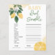 Papier Jeu de Baby shower de course de mot citron