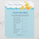 Un jeu classique super amusant "Guess The Price" et "Baby Words Scramble" dans le design de canard en caoutchouc mignon. Idéal pour le baby shower !
