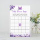 Ajoutez de l'amusement et de l'excitation à votre baby shower avec notre jeu Baby Shower Bingo Papillon Violet. Avec un magnifique papillon violet voltigeant dans un jardin floral violet doux, ce jeu est le moyen idéal pour divertir vos invités tout en gardant le thème élégant et cohérent. Faisant partie de la collection Baby Shower Papillon Violet, ce jeu de bingo charmant apportera joie et rires à votre célébration, en faisant un événement inoubliable.