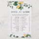 Amusez-vous à votre baby shower avec ce jeu amusant 'Would she Rather'. Le design présente des citrons et de la verdure à l'aquarelle botanique. Personnalisez avec le nom de la future mariée et la date de la douche. Pour une personnalisation plus poussée, veuillez cliquer sur le lien 'personnaliser davantage'. La papeterie de mariage assortie est disponible dans notre collection Citrus Summer.