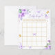 Jeu de bingo bébé papillon floral or violet.