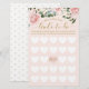 Élégant et stylé jeu de bingo pour future mariée à la douche de mariage. Jeu amusant à jouer lors de votre fête de douche de mariage. Le design présente un style moderne avec nos roses blush peintes à la main à l'aquarelle et feuillage avec une grille de bingo en forme de cœur blanc. La calligraphie élégante de couleur or et la palette de couleurs rose blush créent un look chic moderne. Œuvre de Moodthology Papery.