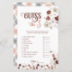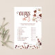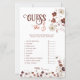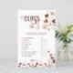 Impliquez vos invités avec ce jeu amusant et interactif "Devinez le prix" pour une baby shower, une activité parfaite pour toute célébration de bébé. Avec des accents floraux automnaux élégants dans des tons riches d'automne, cette carte de jeu met les invités au défi de deviner le coût des articles essentiels pour bébé. C'est une façon divertissante de tester leurs connaissances et de susciter des conversations animées, ajoutant une touche délicieuse à vos festivités de baby shower.