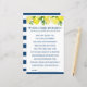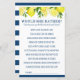 Faites rire avec ce jeu de baby shower « Would She Rather? » (Préfèrerait-elle ?) amusant et facile - conçu pour correspondre à votre thème Main Squeeze (Mon grand amour) aux couleurs citron ensoleillé et marine ! Les invités devront deviner ce que la future mariée choisirait dans des scénarios quotidiens et inspirés du mariage, qu'il s'agisse de siroter du café glacé ou de planifier chaque dernier détail.
