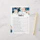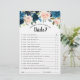 Carte de jeu de douche à nuptiale florale bleu marine foncé "Connaissez-vous bien la mariée?" avec l'élégant bouquet de bleu marine, bleu royal, blanc, rose blush et feuilles d'eucalyptus vert sauge. Veuillez me contacter pour toute aide sur la personnalisation ou si vous avez besoin d'un autre produit avec ce design.