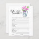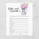 Célébrez avec cette carafe de fleurs d'aquarelle ! Bébé en fleurs ! BABY SHOWER ! Réponses : CRAVINGS, PLEIN, PACIFICATEUR, BOUTEILLE, LUMIÈRE NOCTURNE, LULLABY, STROLLER, ÉPIDURAL, BRÛLE, CHAISE HAUTE, SAC DE DIAPER, ÉPONSE