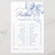 Ce jeu élégant présente un charmant ruban bleu parfait pour un baby shower de mariage "quelque chose de bleu". Conçu dans des couleurs pastel douces à l'aquarelle, il combine un script manuscrit romantique avec des éléments fantaisistes tendance. Idéal pour un baby shower de mariage bleu poussiéreux.