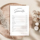 La carte classique de jeu de douche nuptiale comprend un mot mariage scramble avec 15 mots jumelés pour que vos invités se débrouillent. Comptez le nombre de réponses correctes pour déterminer le gagnant. RÉPONSE CLÉ Groom Femme en lune de miel Registre Bouquet Réception Fille Fête des mariées anneaux Fleurs Aisle Photographe Cérémonie Vows