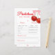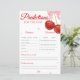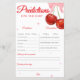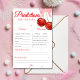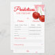 La "Unique Cherry Baby shower Predictions Game Card" est une petite carte de charme ornée d'un arc rose doux et de petites étoiles éparpillées. Il présente un design de cerise mignonne et permet aux invités de faire des prédictions amusantes sur les détails de naissance du bébé comme la date, le poids et les étapes futures. Le design doux et compact en fait un complément enchanteur à tout baby shower, offrant à la fois une activité ludique et un souvenir pour les parents.