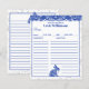 Personnalisez ces cartes de recettes avec le nom d'une cuisine de cuisinier spéciale ! Ces cartes sont décorées dans des motifs de porcelaine bleu et blanc traditionnels d'une bordure supérieure décorative et d'un lapin fleuri - décoré, toutes mes interprétations peintes à la main. La bordure ressemble à un vernis de poterie craquelé. Les cartes sont alignées avant et arrière pour faciliter l'écriture de votre recette. Il est facile de les customiser avec un nom, en utilisant le modèle texte et le menu d'édition.Ce motif populaire de Chine est aimé et intemporel. Design fantasque et unique de Tuzi Williams.