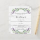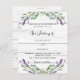 Bois blanc rustique comme arrière - plan décoré de fleurs de lavande et de verdure d'eucalyptus. Personnalisez et vos noms et détails. 1 feuille = 1 invite imprimé bord à bord.