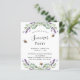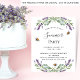 Un arrière - plan blanc décoré de fleurs de lavande, de verdure d'eucalyptus et d'abeilles. Personnalisez et votre nom et vos détails.