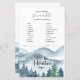 Demandez à vos invités de comprendre ces mots liés au bébé. L'aventure commence, thème du baby shower forestier. Couleur bleu vert aquarelle.