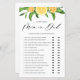 Devine qui l'a dit. Était-ce la mère ou le père ? | Ajoutez ces baby showers amusants et ludiques He Said She Said carte de jeu à votre événement. Cette carte de jeux pour papa ou maman personnalisable présente des illustrations aquarelle de citron et d'oranges avec des accents de verdure. Personnalisez en ajoutant vos questions. Cette carte de jeu pour deviner les baby showers d'agrumes est parfaite pour les baby showers de printemps et d'été.