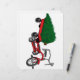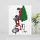 Livraison d'arbre de Noël dans un petit chariot rouge, style tricycle. Cadeau rétro très mignon.