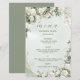 Roses blanches élégantes sur fond vert sauge. Invitation magnifiquement conçue qui peut être personnalisée avec votre nom. Sélectionnez le bouton "personnaliser" pour changer le style, la couleur et la taille de la police.