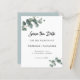 Les feuilles de eucalyptus vert poussiéreux donnent un aspect naturellement élégant à ces cartes "Save the Date" pour un mariage économique. Avec ses belles formations de feuilles aux nuances de bleu et de vert, l'eucalyptus est une illustration parfaite pour les mariages à thème floral ou naturel, les mariages en plein air dans un jardin, ainsi que les mariages d'hiver dans le sud. Le texte "Save the Date" est un élément graphique ; tous les autres textes au recto et au verso peuvent être facilement révisés sur le modèle de personnalisation. VEUILLEZ NOTER : Les cartes économiques n'incluent pas automatiquement d'enveloppes, car de nombreuses personnes préfèrent acheter les leurs. Il existe cependant une option pour commander des enveloppes en utilisant la flèche déroulante "option enveloppe".