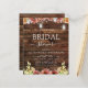 Mariage Champêtre Rustique Extérieur sur Bois Sombre avec Tournesols Bourguignons, Orange et Jaunes dans des Pots en Verre sur des Guirlandes Lumineuses Automne ou Mariage Champêtre Invitations de Shower de Mariée - comprend une belle et élégante typographie script pour la célébration de la future mariée.
