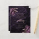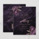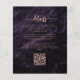 Cette élégante invitation de mariage présente des bouquets floraux violets mis en valeur avec une fausse verdure en feuille d'or rose dans deux coins, sur une image de fond d'agate aquarelle violette. Le texte rose personnalisable combine des polices serif, italique et manuscrites. Le verso offre un espace pour les détails du mariage, ainsi qu'un code QR que les invités peuvent scanner pour visiter votre site web et répondre.