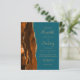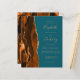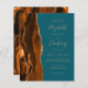 Le bord gauche de cette élégante faire-part de mariage moderne est orné d'une bordure d'aquarelle orange brûlée, recouverte d'une parties scintillant en faux or. Le texte personnalisable combine écriture manuscrite dorée, cuivre et polices italiques sur un arrière - plan bleu turquoise. L'envers présente une conception d'agate correspondante.
