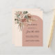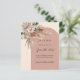 Une carte moderne, design et romantique Save the Date pour un mariage. Crème, arrière - plan couleur pêche, arche ancienne couleur rose, elle est joliment décorée de roses terreux et muets, de verdure d’eucalyptus et d’herbe à la pampa pour une sensation naturelle et romantique. Personnalisez et ajoutez la date, vos noms. 1 feuille = 1 Enregistrer la date d'impression arête à arête.