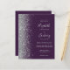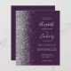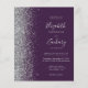Le bord gauche de cette élégante faire-part de mariage moderne est orné d'une bordure en faux parties scintillant argenté. Le texte personnalisable combine écriture gris argenté pâle, copperplate et polices italiques sur un arrière - plan violet foncé. Ajoutez des détails supplémentaires au verso, ainsi qu'un code QR pour aider vos invités à visiter votre site Web mariage.