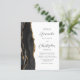 Le bord gauche de cette élégante faire-part de mariage moderne est orné d'une bordure en aquarelle noire ornée d'une parties scintillant en faux or. Le texte personnalisable combine le script gris charbon et les polices sans serif sur un arrière - plan blanc. L'envers offre de l'espace pour les détails mariages sur un arrière - plan blanc solide, ainsi qu'un code QR que les clients peuvent scanner pour visiter votre site Web et RSVP, ce qui permet d'économiser le coût d'impression et d'envoi de cartes RSVP séparées.