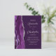 Le bord gauche de cette élégante faire-part de mariage moderne est orné d'une bordure d'aquarelle violette ornée d'une parties scintillant en faux or. Le texte personnalisable combine un script couleur or et des polices sans serif sur un arrière - plan prune violet. L'envers offre de l'espace pour les détails mariages sur un arrière - plan violet solide, ainsi qu'un code QR que les clients peuvent scanner pour visiter votre site Web et RSVP, qui économise le coût d'impression et d'envoi de cartes RSVP séparées.