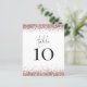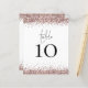 Une taille de 4,5 x 5,6 pouces semi-brillant poids 110 livres, qui est d'une épaisseur similaire à une carte postale, avec ONE par feuille. Mariage de Parties scintillant rose Or Table Aucun blanc. Le tableau est dans un script de style d'écriture manuscrite défini et votre numéro de table sous les bordures de parties scintillant imparfaite. Personnalisez facilement le numéro. Le même design se trouve également à l'arrière.
