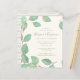 Ce faire-part de mariage abordable présente des feuilles d'eucalyptus couleur douce à l'aquarelle dans les tons de sauge et de menthe, encadrant le texte moderne dans des polices élégantes. Il est imprimé sur une option papier économique, parfait pour les couples qui veulent un design magnifique et naturel sans trop dépenser. Idéal pour les mariages dans le jardin, les fêtes minimalistes ou les événements de printemps et d'été.