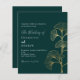 Un arrière - plan vert émeraude décoré de simples feuilles de ginkgo doré. Personnalisez et ajoutez vos noms et les détails. 1 feuille = 1 invite imprimé bord à bord.