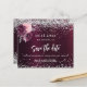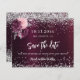 Un Save the Date moderne et élégant pour un mariage. Un fond dégradé bordeaux profond orné de fleurs et de confettis argentés factices. Personnalisez et ajoutez une date et des noms. Le texte : Économisez la date est écrit avec un grand script manuscrit tendance.