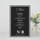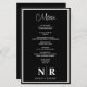 Dînez dans le style avec notre menu de dîner de répétition Customisé Monogramme Mariage noir et blanc, le mélange parfait d'élégance et de personnalisation pour votre événement spécial. Conçus avec une attention minutieuse aux détails, ces menus personnalisés apportent une touche de sophistication à votre dîner de répétition, à votre fête de fiançailles ou à votre réception de mariage. Avec un jeu de couleurs noir et blanc intemporel, nos menus dégagent un charme classique tout en offrant un cadre élégant pour votre monogramme mariage personnalisé. Vos initiales ornent élégamment chaque menu, créant une touche sur mesure qui donne le ton pour une expérience culinaire mémorable. Ce n'est pas seulement un détail pratique, ces menus élégants font office de gardiens pour vos invités, un précieux rappel de l'amour et de la joie partagés lors de votre grand jour. Que vous planifiez un simple rassemblement ou une grande aventure, nos menus personnalisés pour le dîner ajoutent une touche de raffinement à toute célébration. Terminez le look avec nos cartes de lieux de coordination, afin que chaque invité se sente bien accueilli et honoré à votre événement. Avec notre menu de dîner de répétition Customisé Monogramme Mariage noir et blanc, chaque détail de votre journée spéciale est magnifiquement organisé, laissant une impression durable sur tous ceux qui y assistent.