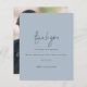 Simple Script Photo Mariage Dusty Merci Bleu Un prix économique PETIT 4,5" x 5,6" alternative. Disponible dans un STOCK SEMI-GLOSS 110 lb CARD qui est l'option par défaut (plus épais pour les invitations), OU un STOCK SATIN FINISH 80 lb THINNER PAPER (idéal pour les boîtiers). Les enveloppes sont en option et légèrement plus grandes que la taille de la carte. . Un design minimaliste de typographie avec un ensemble de style design d'écriture manuscrite pour le Merci. Sur le dos, remplacez l'exemple de photo par votre préféré de la journée comme souvenir pour vos invités. Personnalisez facilement le reste du texte avec votre message et vos noms.