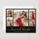 Modern Script Mariage 5 Photo Collage Carte de remerciements abordable en or et noir. Élégant minimaliste élégant modèle de carte mariage élégant avec cinq (5) grille photo collage sur le devant et un script de calligraphie cursive "Amour et merci" dans une police de queue de swash écrit à la main. Personnalisez votre nom et merci message.