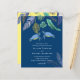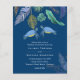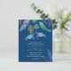 Des tortues marines bleues, turquoise et jaunes avec des feuilles tropicales figurent sur cet article de mariage sur la vie océanique et balnéaire. Les champs de modèle de texte des deux côtés garantissent que vous pouvez ajouter tous vos détails supplémentaires, y compris la RSVP, le registre de cadeaux, les détails de la réception, les directions et plus encore.