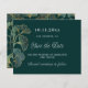 Un moderne et élégant Save the Date pour un mariage. Arrière - plan vert émeraude décoré de feuilles de ginkgo. Personnalisez et ajoutez une date et des noms. Le texte : Save the Date est écrit avec un grand script de style à la main tendance. 1 feuille = 1 enregistrer la date d'impression du bord au bord.
