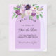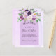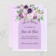 Un moderne et élégant Save the Date pour un mariage. Violet aquarellé, arrière - plan lavande et arche. Décoré de fleurs violettes et violettes. Personnalisez et ajoutez une date et des noms. Le texte : Save the Date est écrit avec un grand script de style à la main tendance. Retour : ajoutez votre URL à votre site Web mariage pour plus d'informations. 1 feuille = 1 Enregistrer la date d'impression arête à arête.