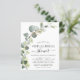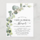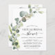 Cartes d'invitation de fête de fiançailles virtuelle de mariage printanier à l'aquarelle botanique de succulent de verdure d'eucalyptus à petit budget sur fond blanc - comprend une typographie de script élégante et belle avec des feuilles botaniques modernes et de la verdure pour la célébration spéciale de la future mariée.