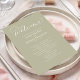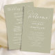 Un simple programme de cérémonie Mariage feuille de papier modèle. avec, élégant, minimaliste, simple, script de calligraphie avec typographie de bienvenue, dans un vert sauge botanique, et un style classique.