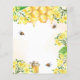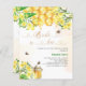 Un élégant arrière - plan blanc et doré à l'eau. Décoré d'abeilles bourdonnantes, de miel fondu, d'un nid d'abeille aux fleurs jaunes, de fleurs et d'un pot de miel. Avec le texte : Mariée à être écrite avec un script de style moderne écrit à la main avec les coeurs. Personnalisez et ajoutez le nom de la mariée. 1 feuille = 1 invite imprimé bord à bord.